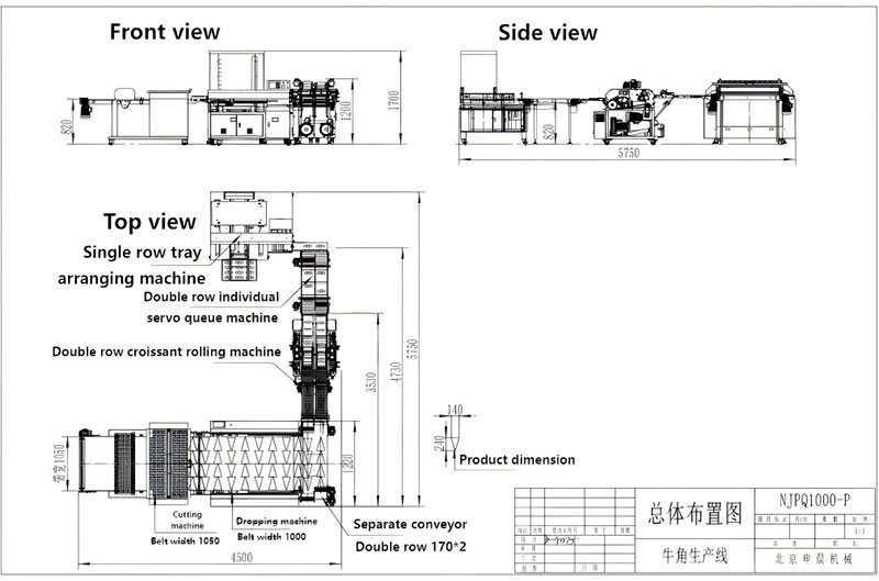 Producción por hora (con máquina automática de acomodado de bandejas): croissant de 70 g: 3,500 unidades; croissant de 50 g: 4,500 unidades; croissant de 30 g: 5,500 unidades; Tasa de rendimiento: ≥95%.