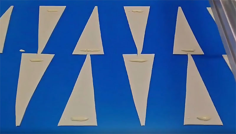La línea de producción de croissants con relleno en línea o rellenadora en línea realiza el proceso de relleno durante la fabricación, eliminando la necesidad de inyectar el relleno después del horneado. Esto permite ahorrar tiempo, mano de obra y costos de producción, manteniendo al mismo tiempo la integridad y buena apariencia del producto. La línea incorpora un sistema de relleno sincronizado (follow-up), que garantiza una dosificación estable y uniforme, ofreciendo mayor eficiencia en comparación con los sistemas de relleno fijo.